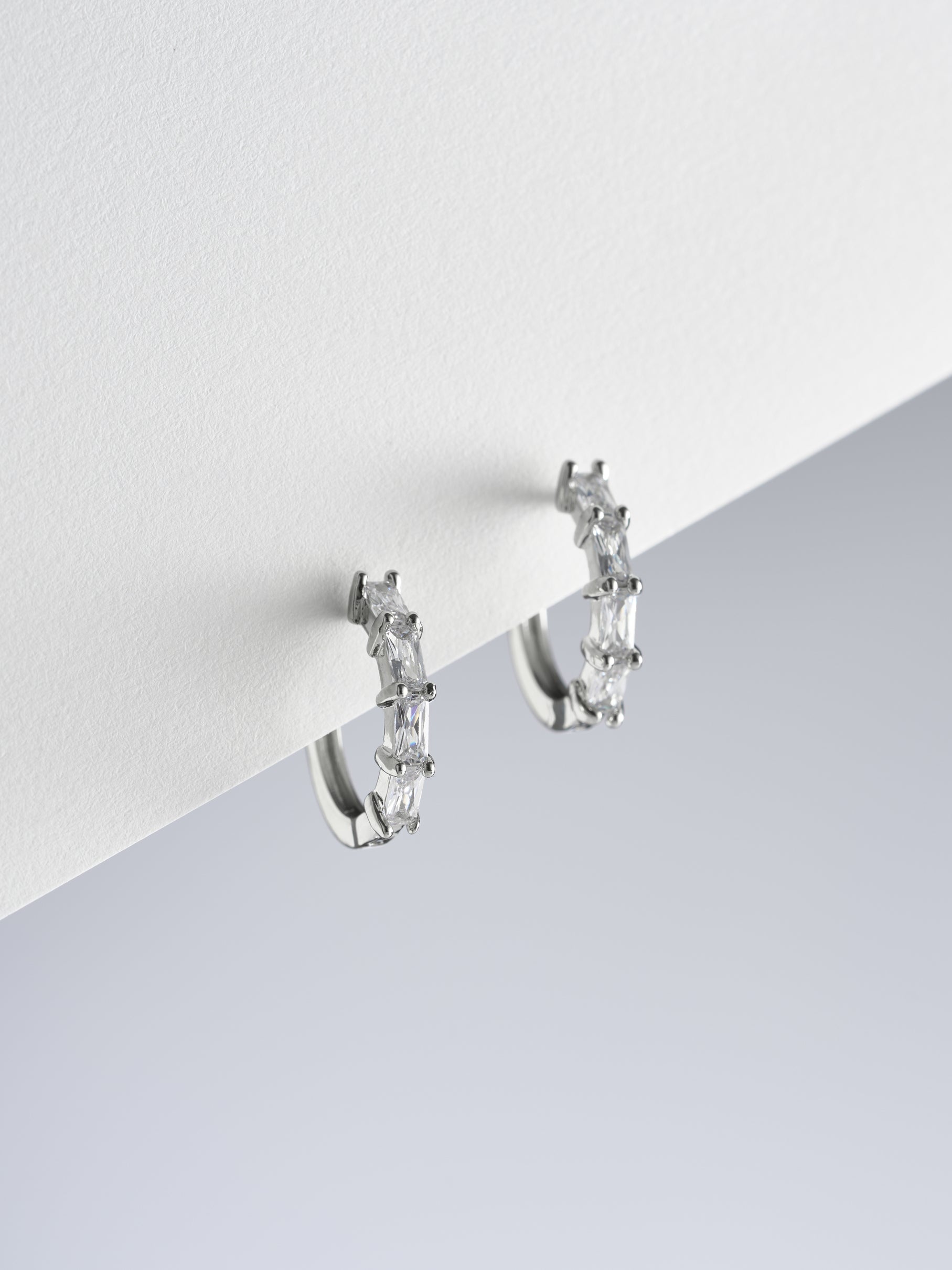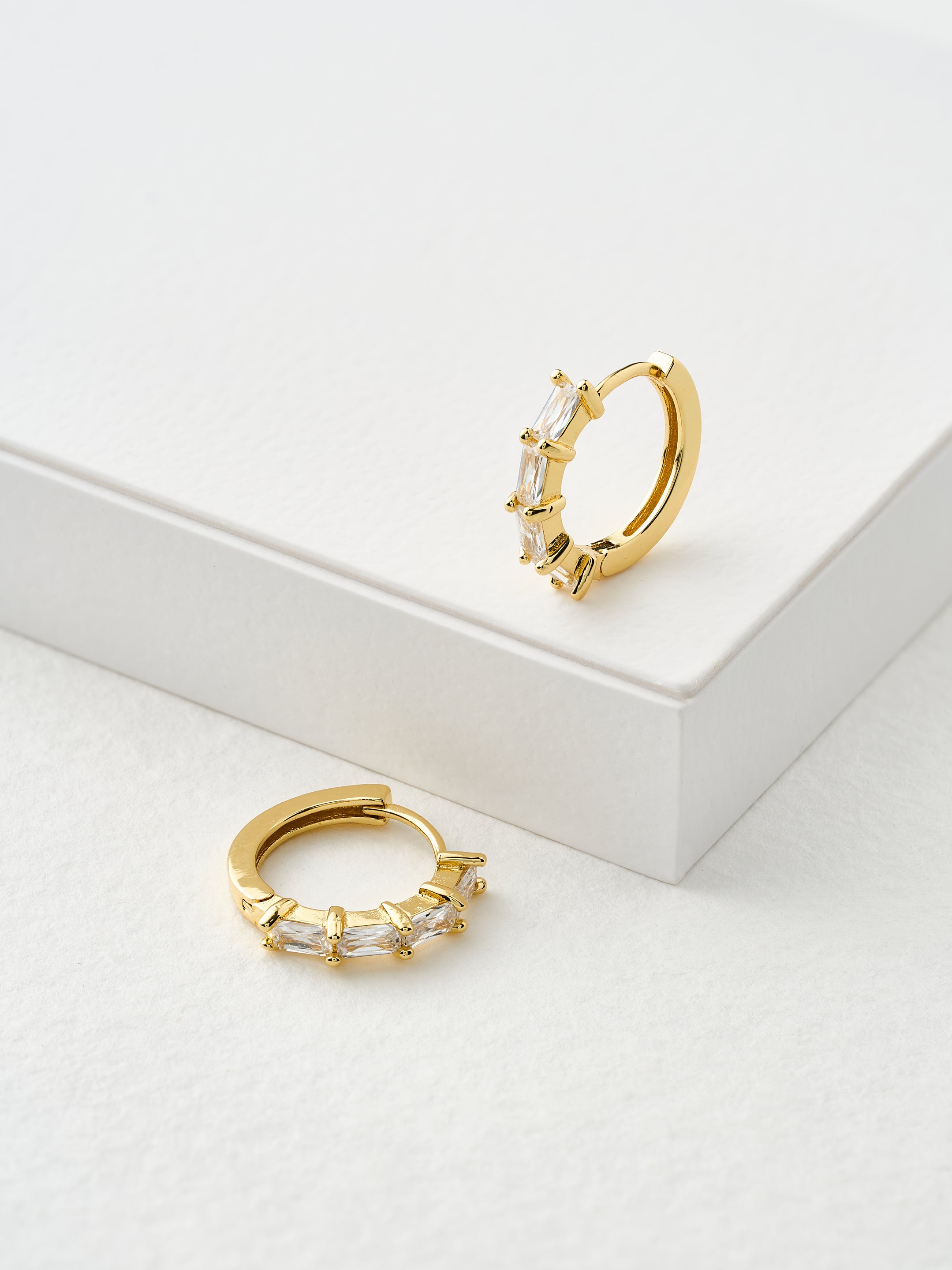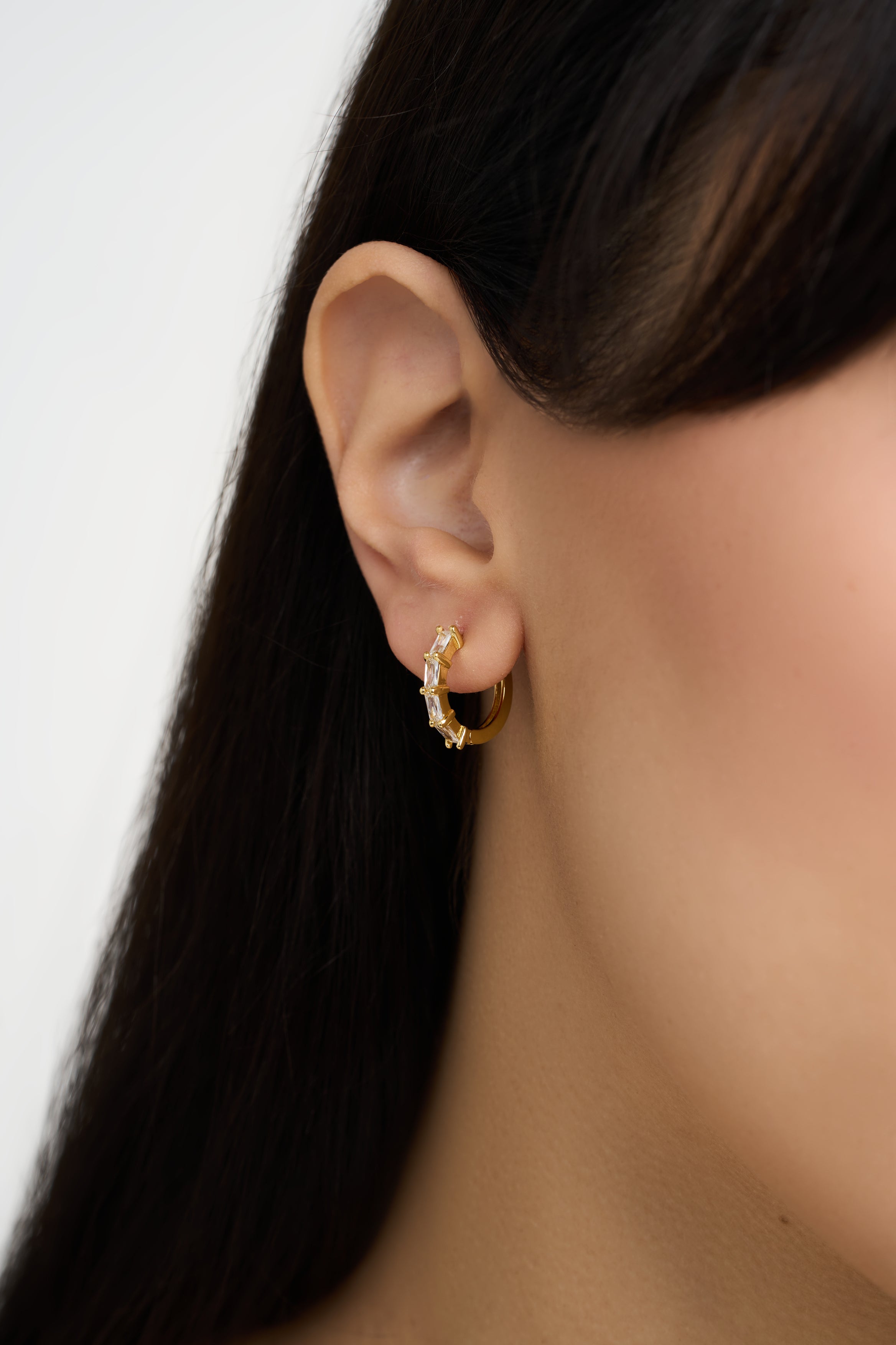 Baguette Crystal Huggie Hoop Earrings Gold Silver - Small Hoop Earrings for Women