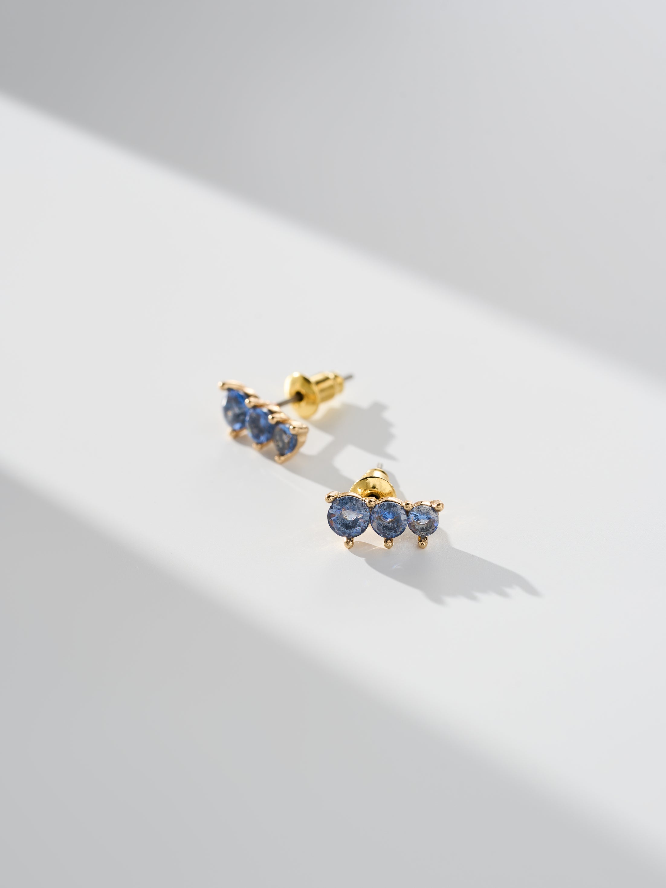 Celebrate your unique story with these delicate birthstone stud earrings featuring three sparkling gemstones in a curved arc design. Each pair is crafted with genuine birthstones set in lustrous gold-tone settings, creating a personalized piece that's both meaningful and elegant.
