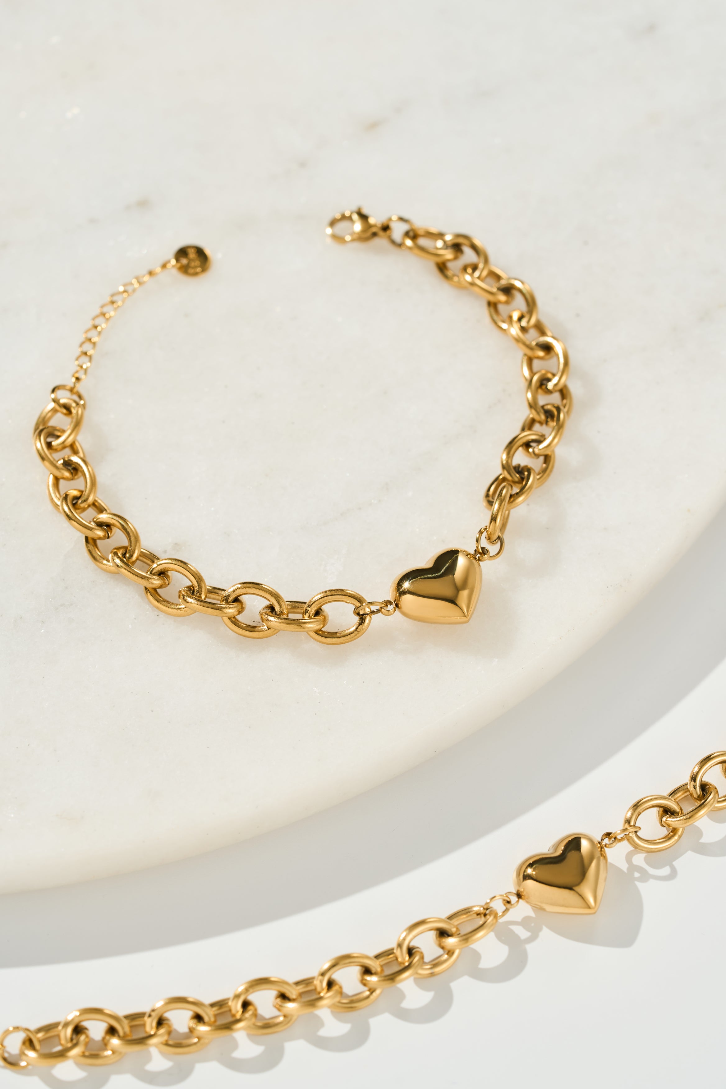 • Premium Materials: Gold-tone plated chunky chain link design with smooth heart charm
