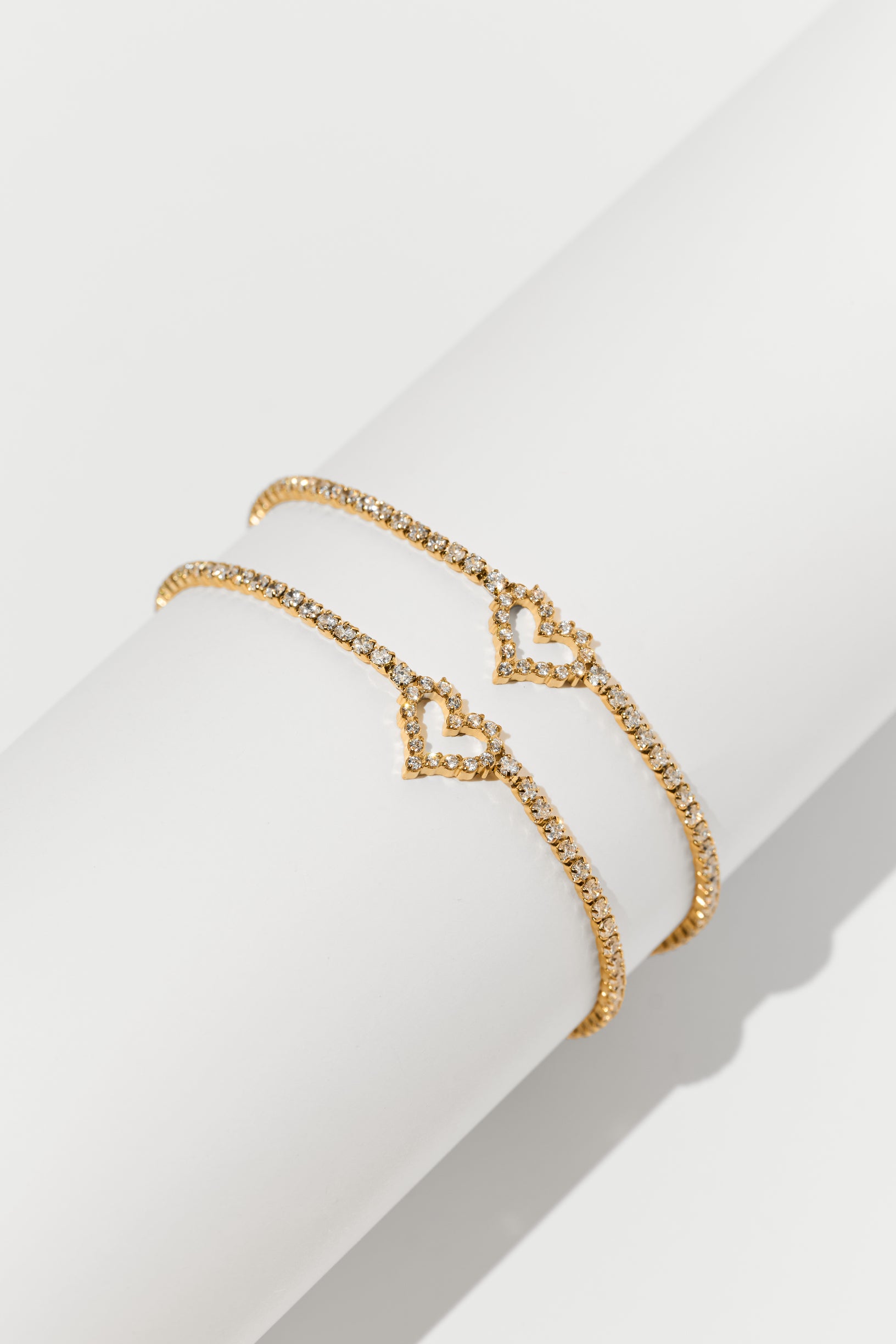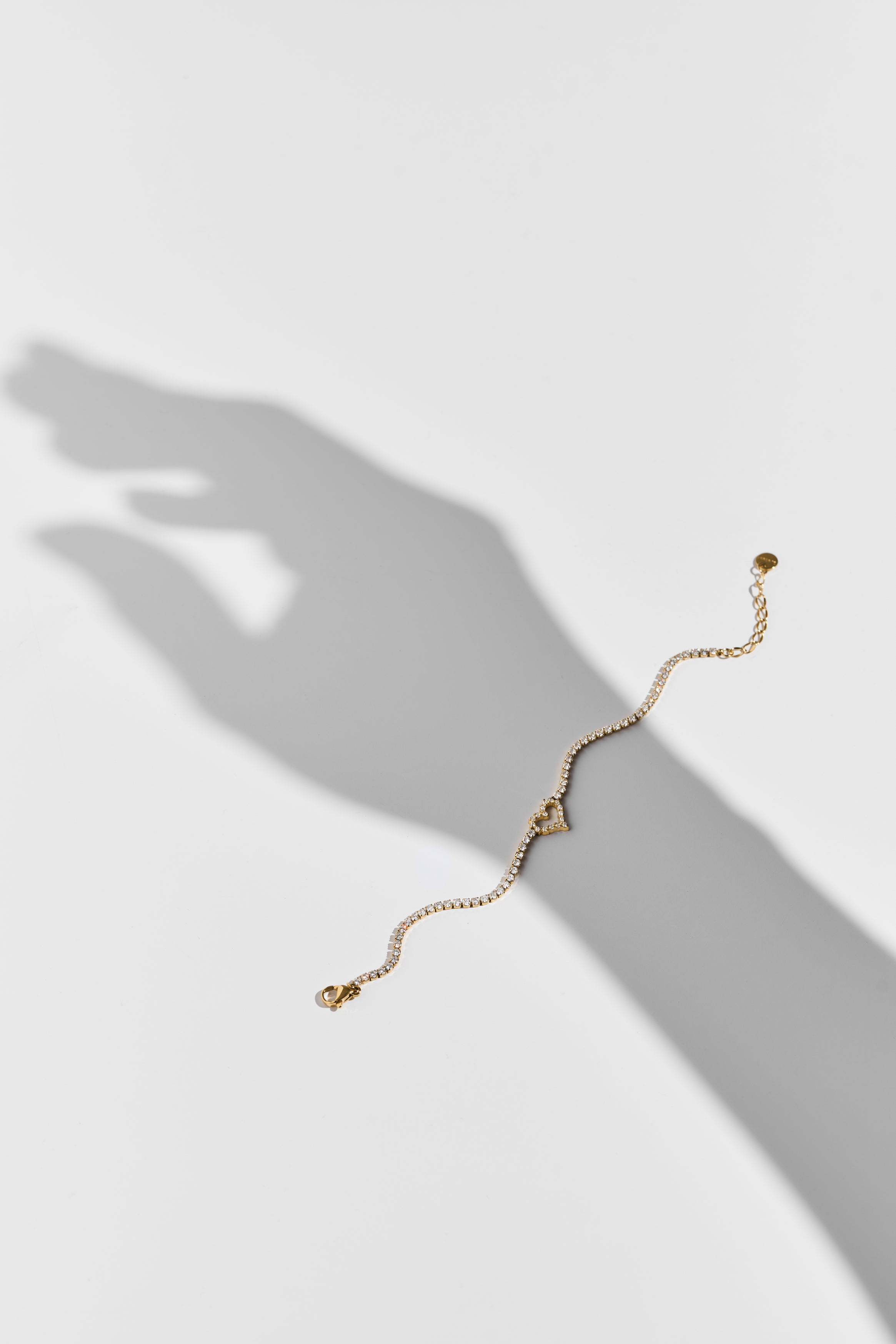 Crystal Heart Bracelet - Delicate Tennis Bracelet with Heart Charm