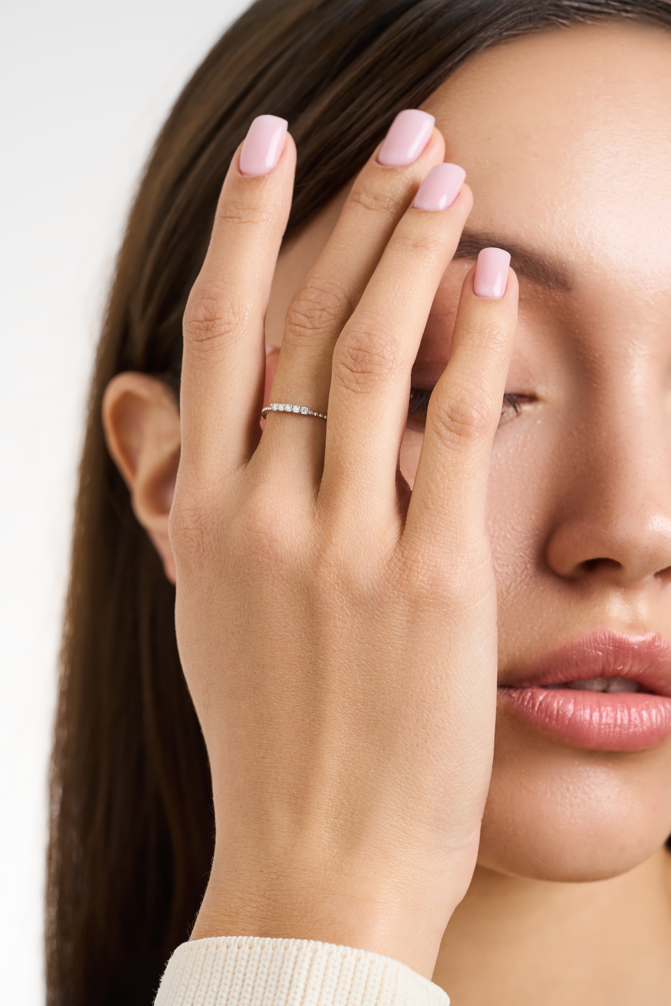 • Brilliant cubic zirconia crystals encircling the entire band