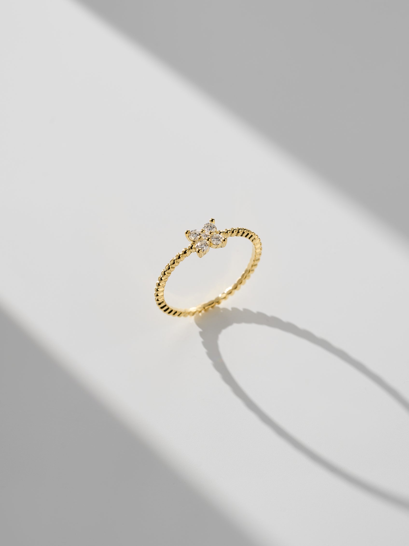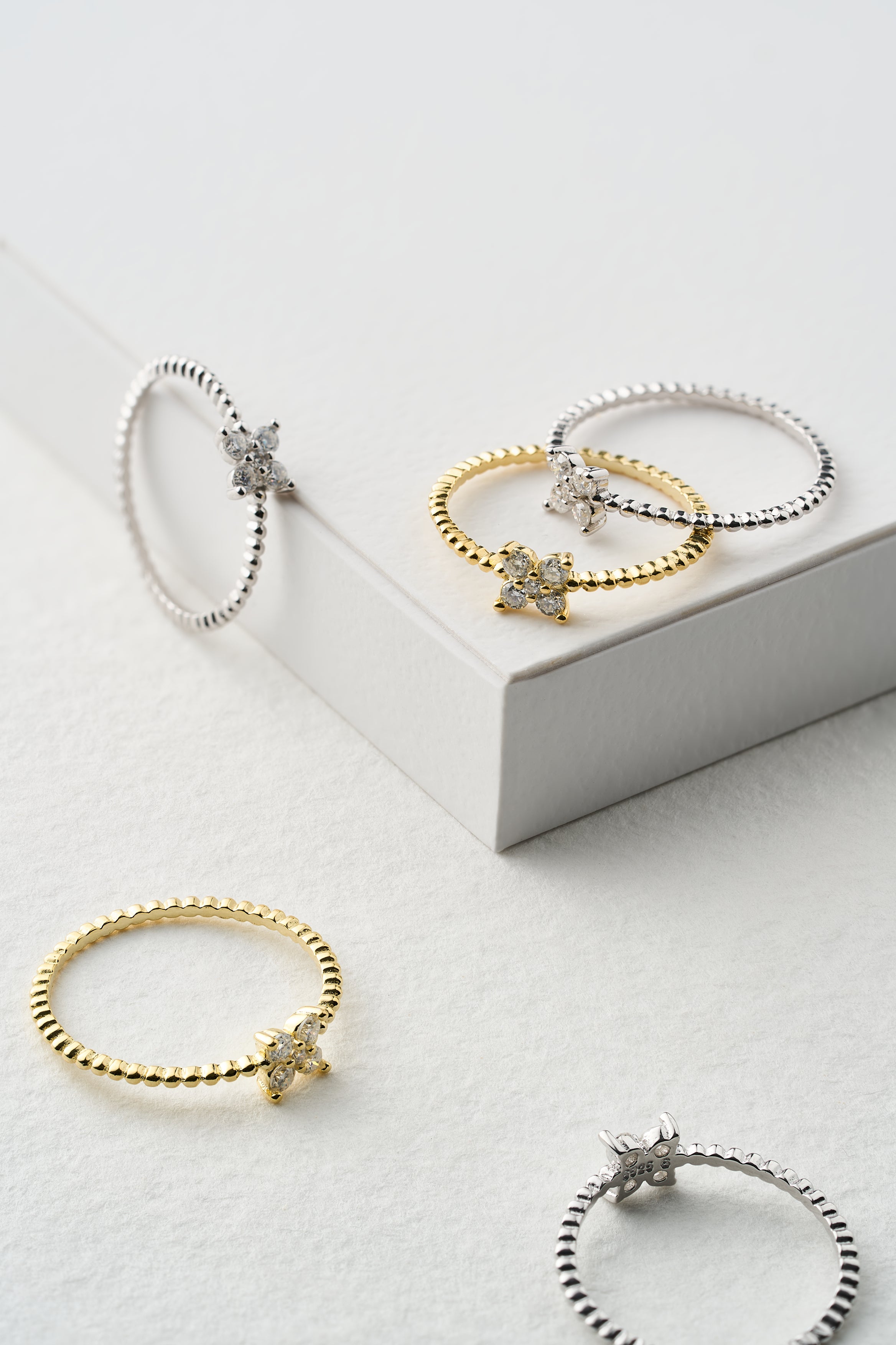 Minimalist Flower CZ Ring, Dainty Stacking Band for Women, Trendy Delicate Ring, Everyday Jewelry, Birthday Gift for Her