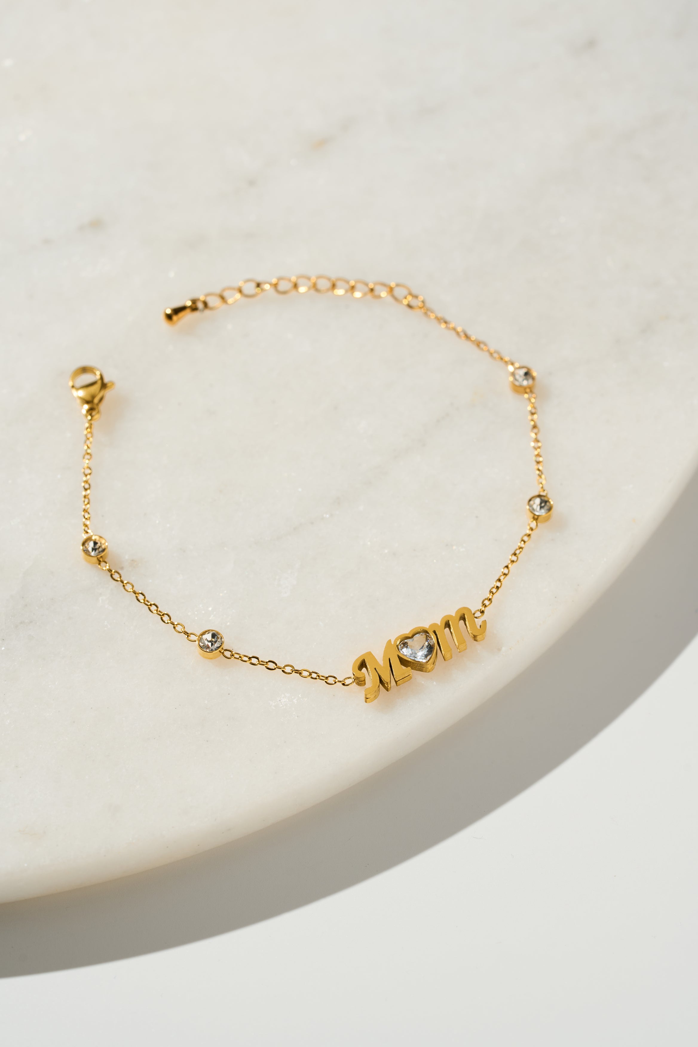 MOM Bracelet - Delicate Chain Bracelet with Crystal Heart Charm