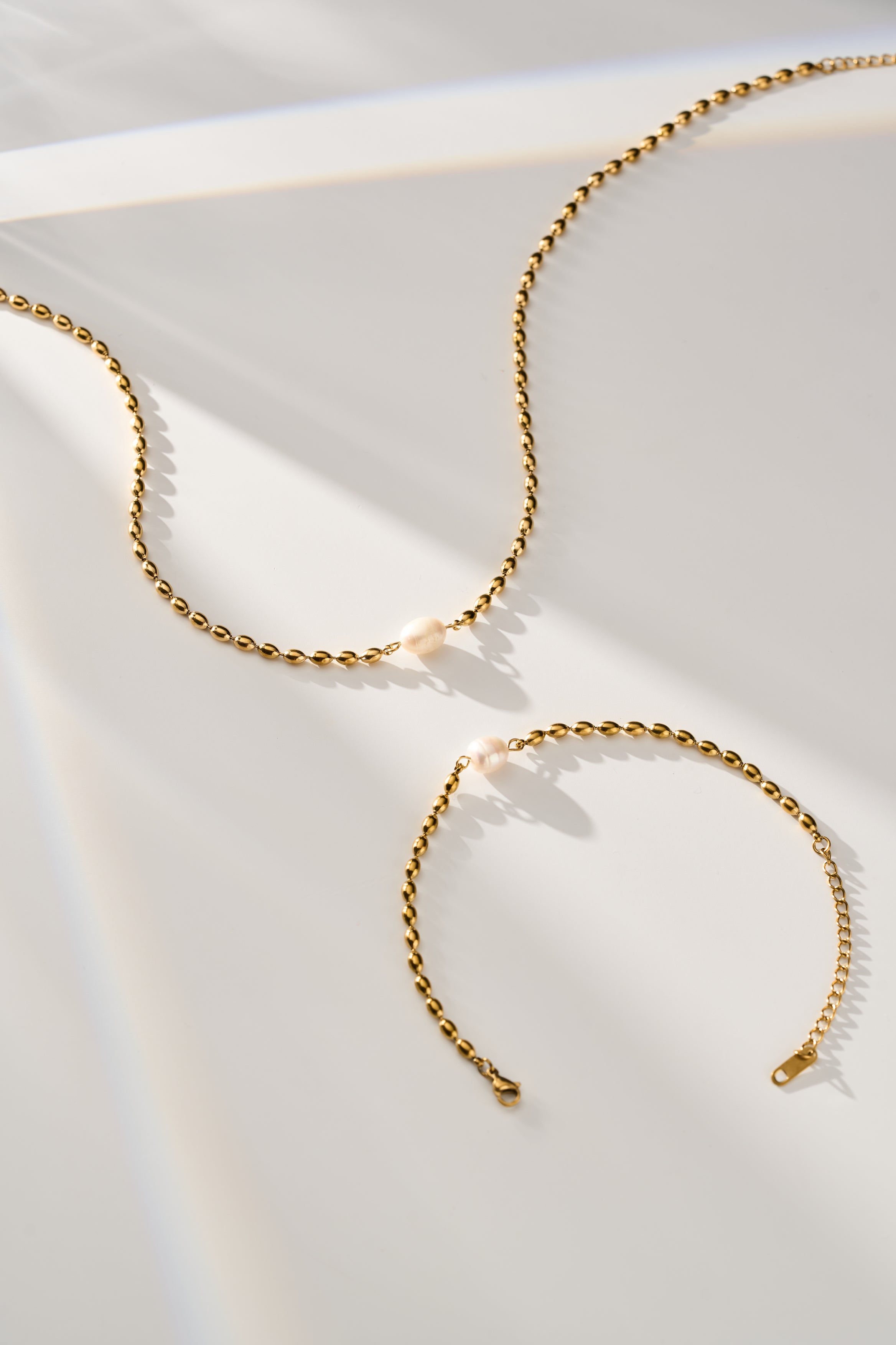 • Premium Materials: Gold-tone plated beaded chain with natural freshwater pearl
